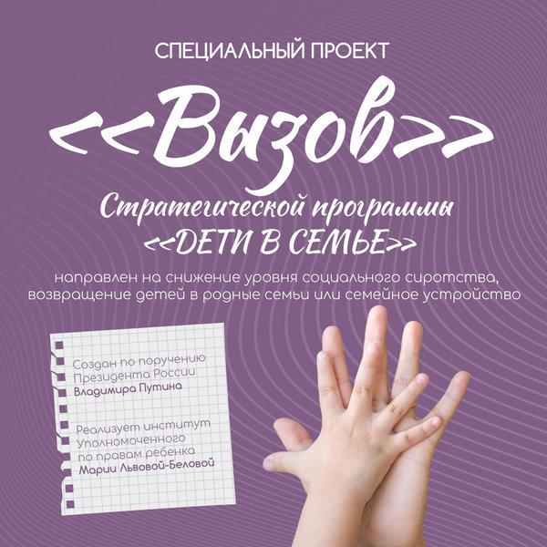 Федеральный проект «Вызов» направлен на сокращение уровня семейного неблагополучия и реализацию права ребёнка жить и воспитываться в семье.