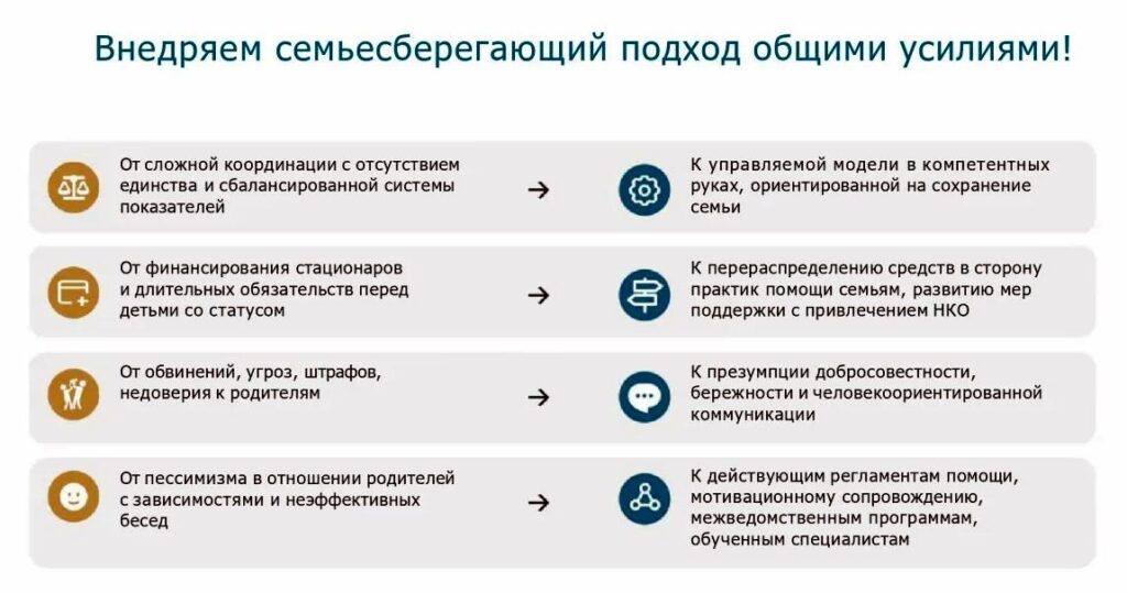 В течение года эти методы помогли вернуть в семьи 7 723 ребёнка и позволили 8 800 детям избежать попадания в учреждения. Особое внимание уделяется поддержке родителей в борьбе с зависимостями и восстановлении в родительских правах.